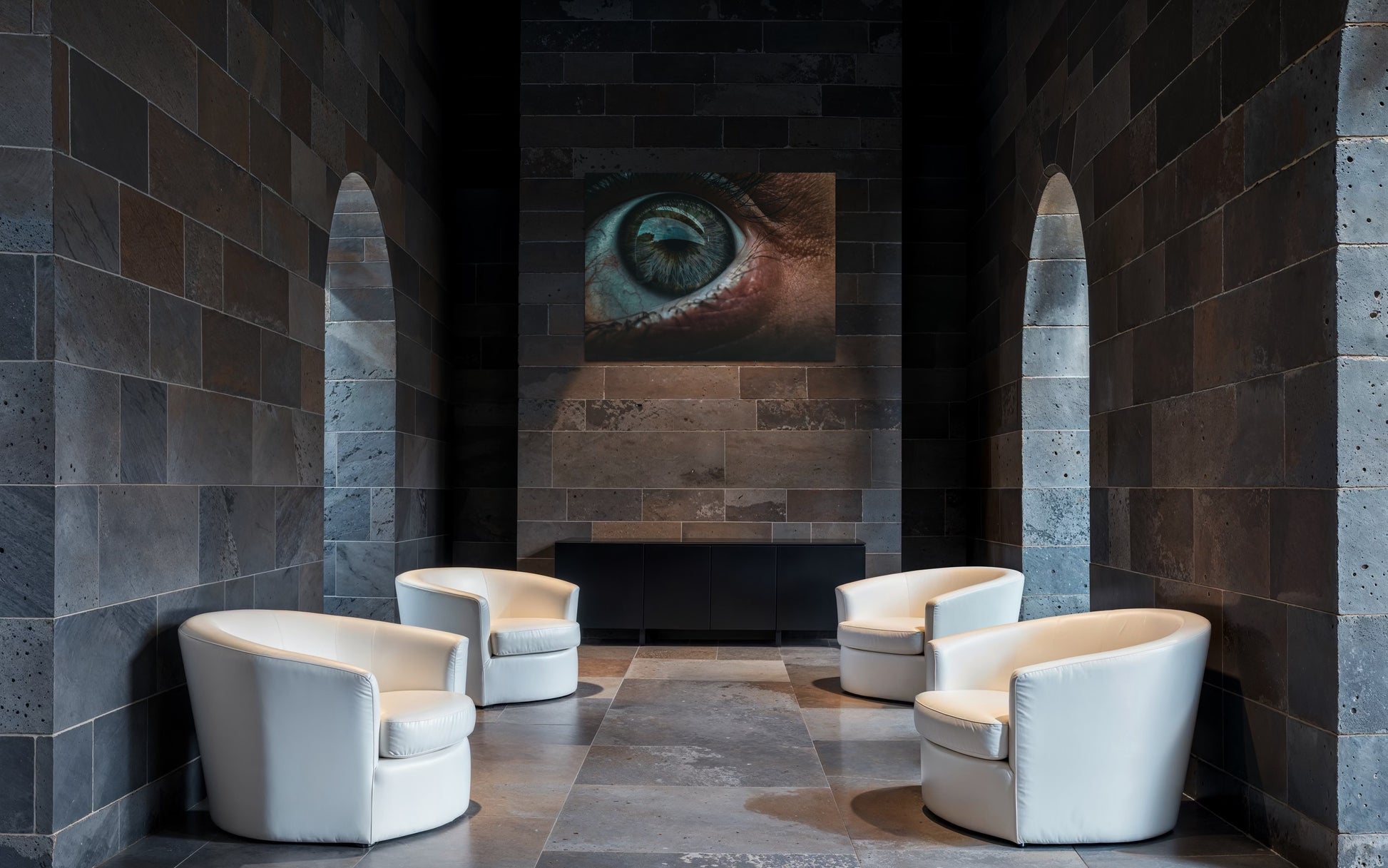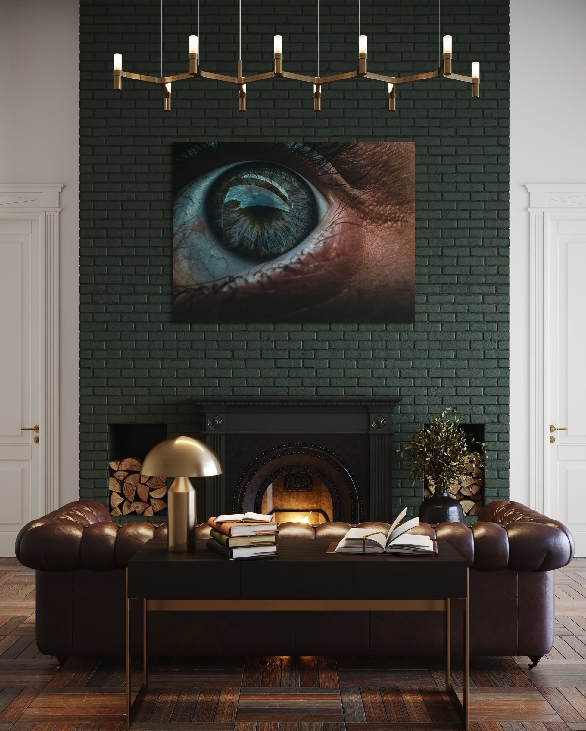 This close-up of a human eye reveals the intricate beauty of the iris, veins, and reflections — a poetic symbol of awareness, curiosity, and inner depth.Perfect for modern, surreal, or conceptual interiors that embrace emotion and meaning.