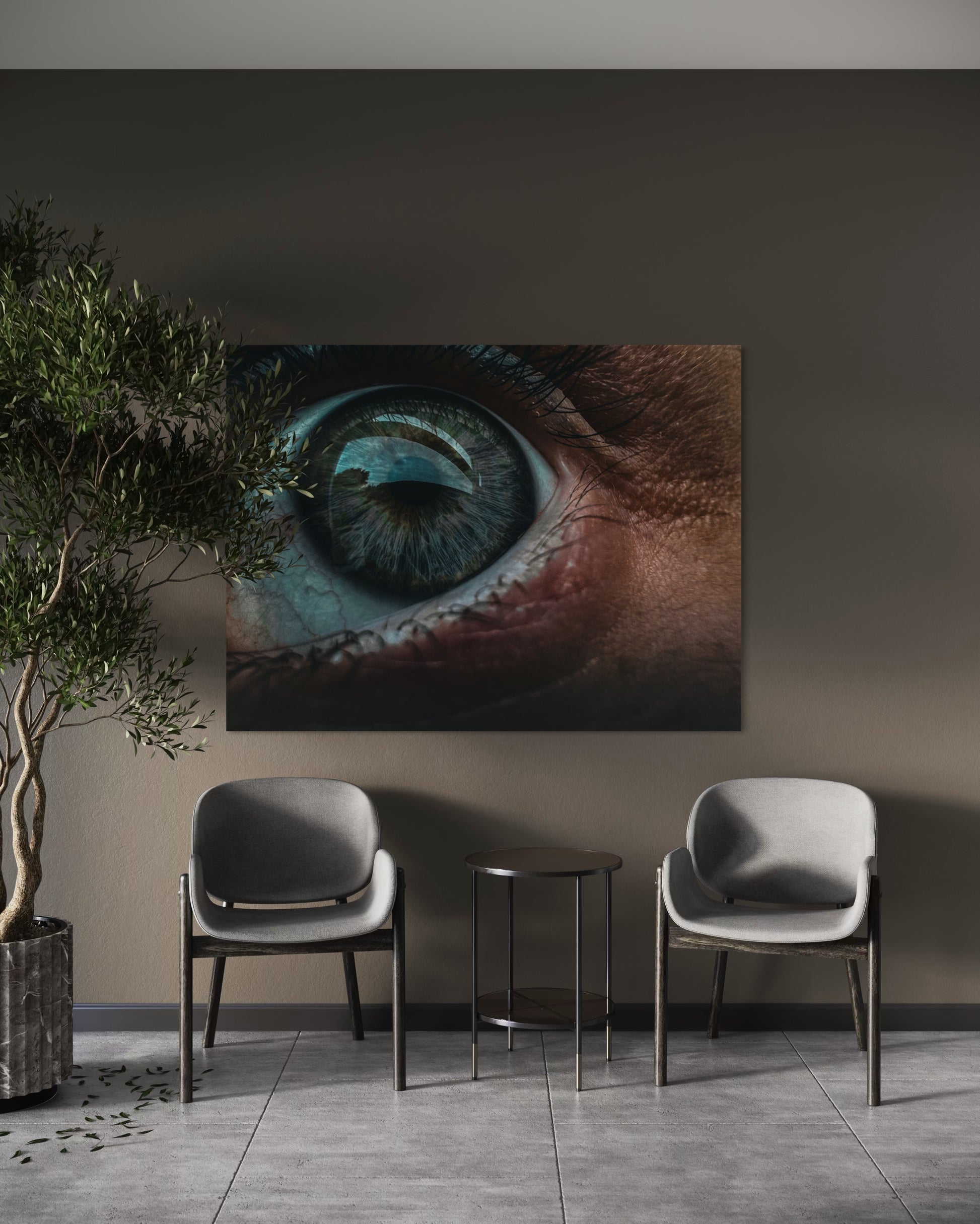 Museum-Quality Matte Paper Metal Framed Poster Step into the world of detail and emotion with The Eye of Perception, a macro fine art photography print by PolaDova. This close-up of a human eye reveals the intricate beauty of the iris, veins, and reflections — a poetic symbol of awareness, curiosity, and inner depth. Perfect for modern, surreal, or conceptual interiors that embrace emotion and meaning.