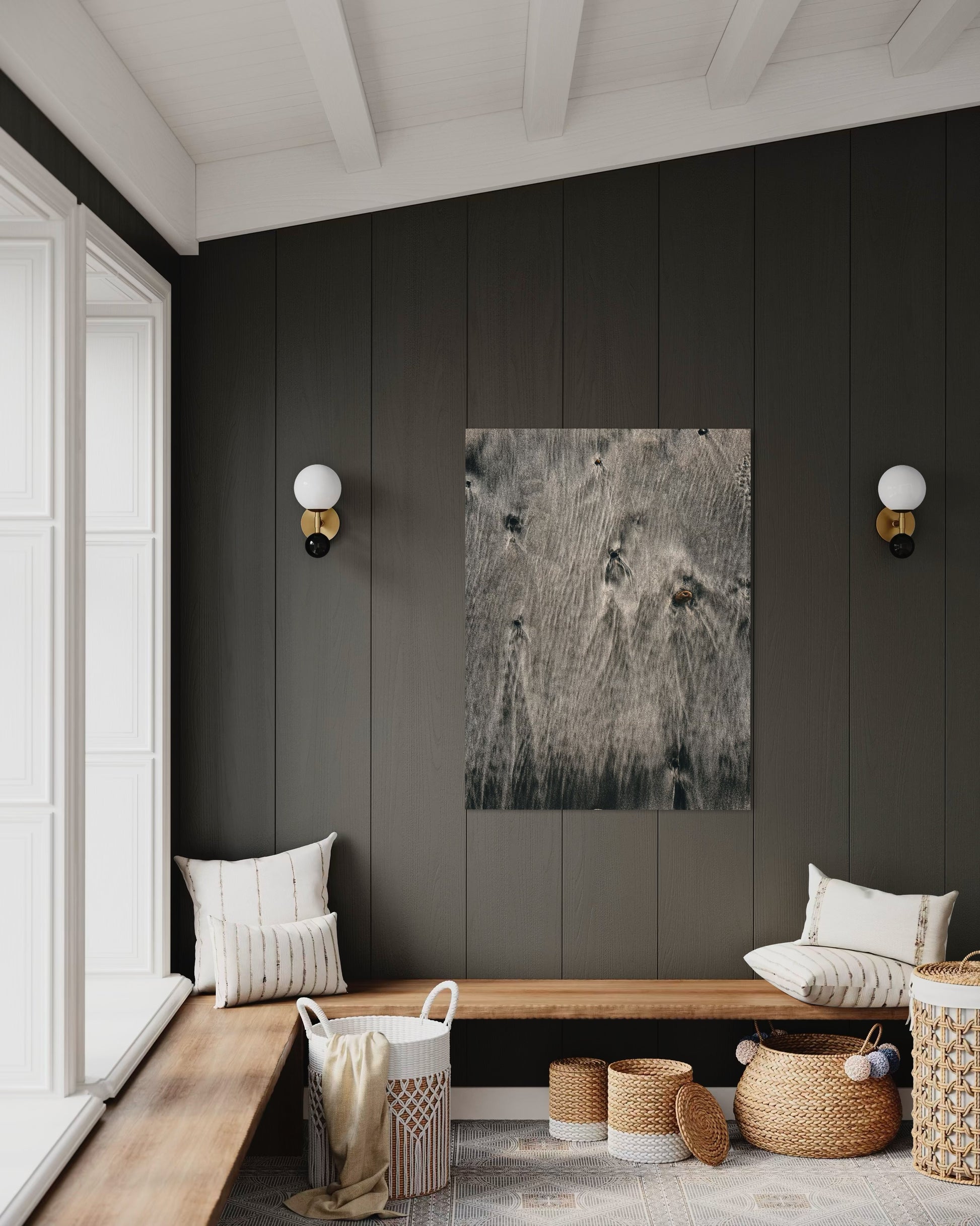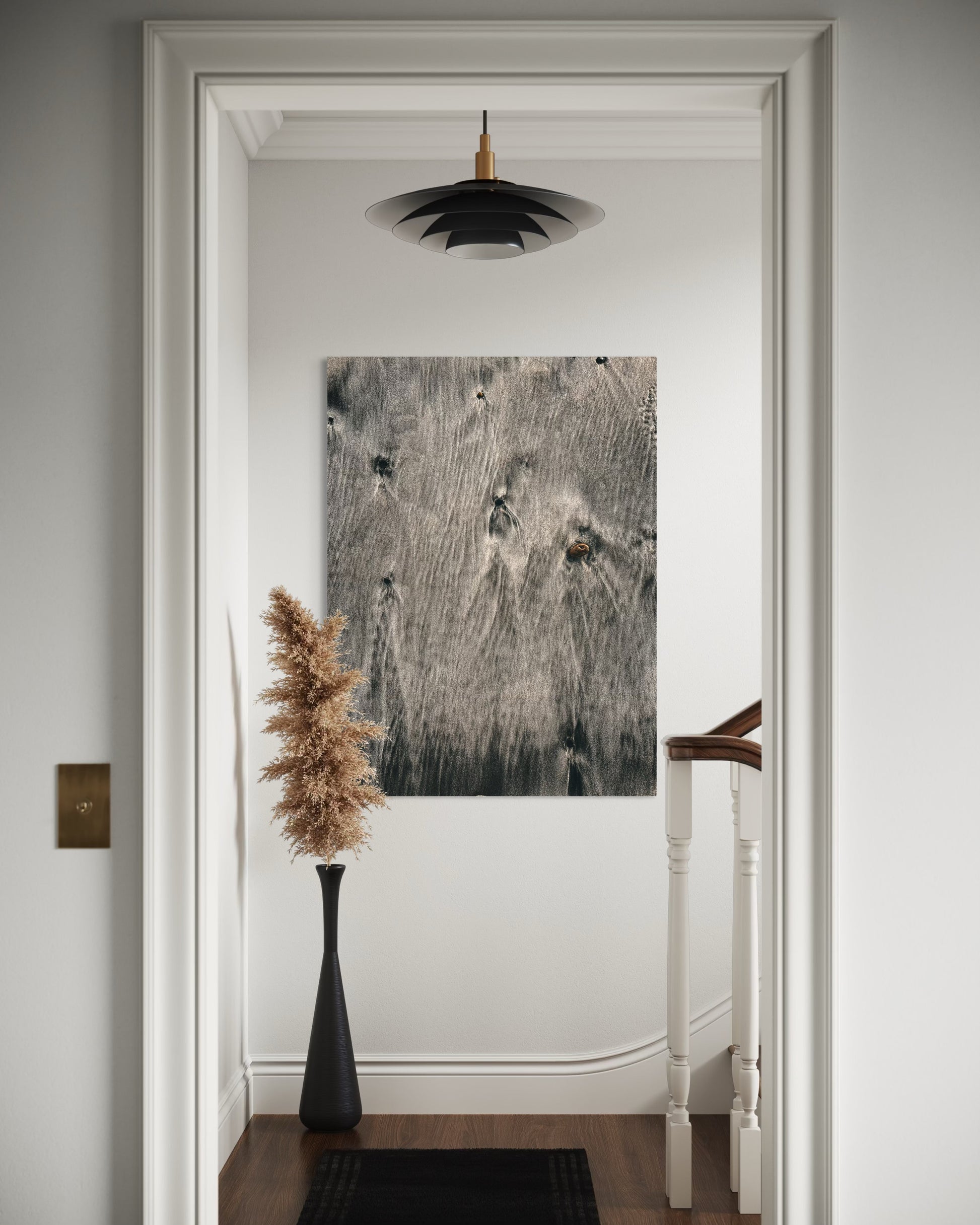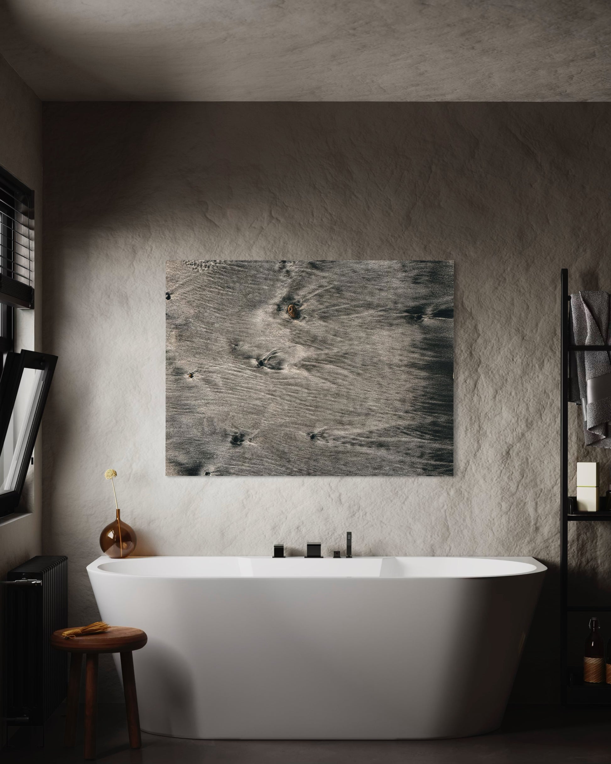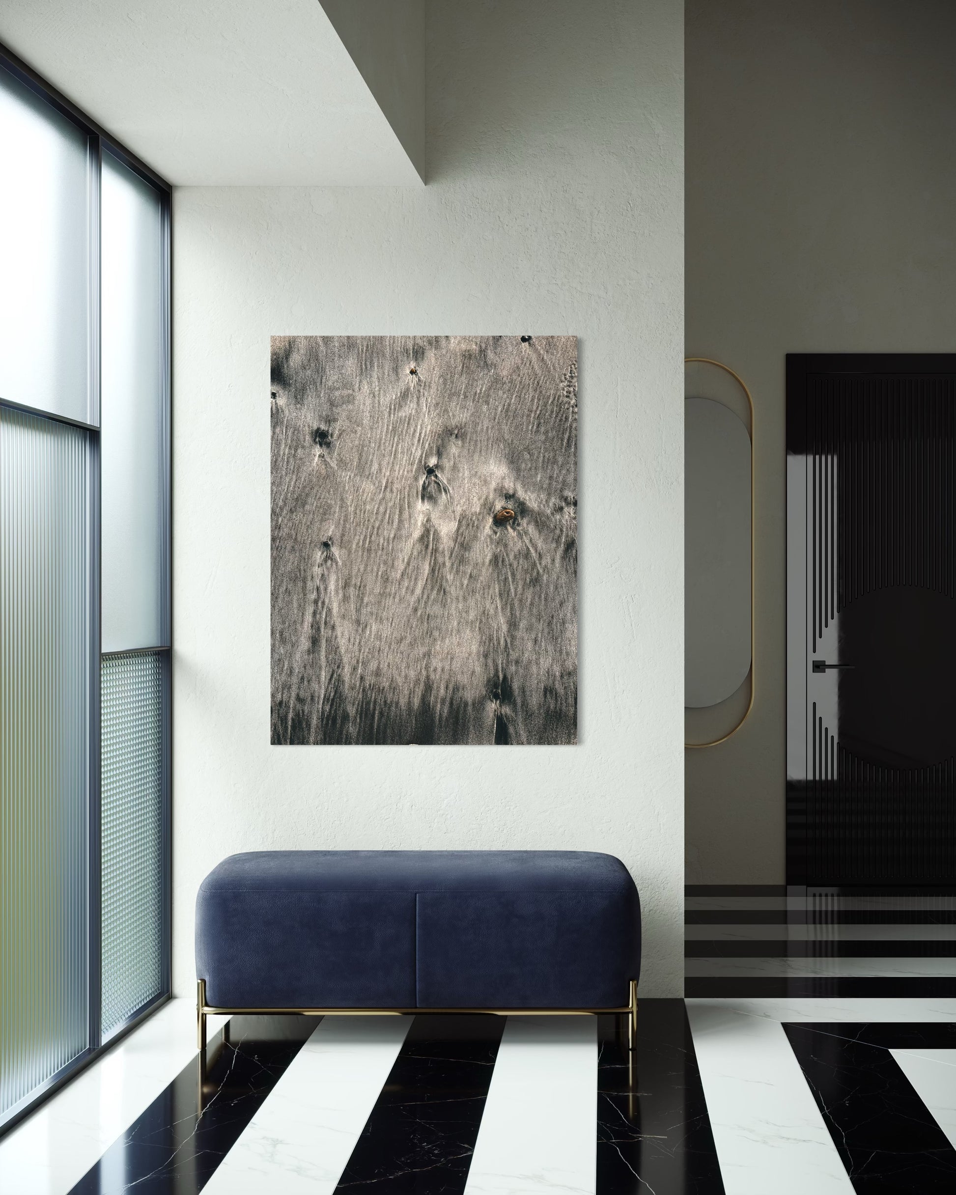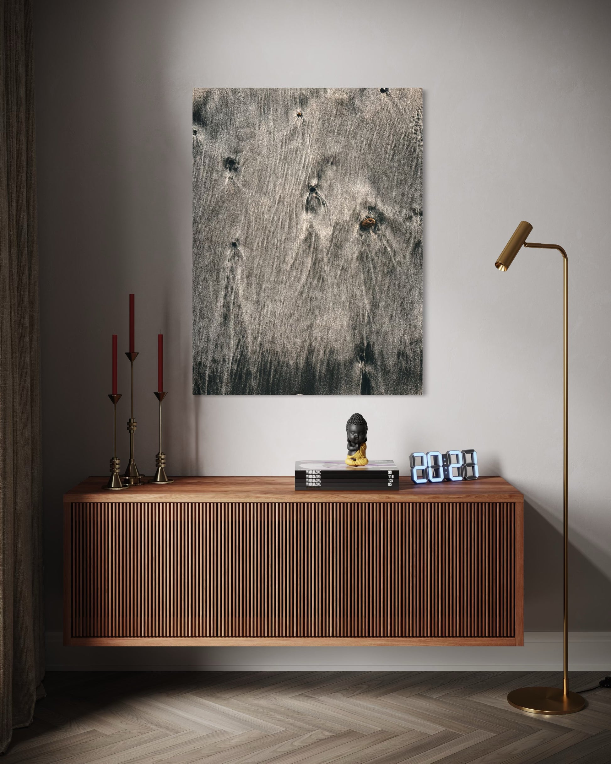 The natural flow of wet sand and subtle ripples create a soothing, organic pattern that evokes the peaceful rhythm of the ocean. Perfect for coastal, neutral, or Scandinavian interiors, this artwork adds a touch of modern nature elegance to any space.