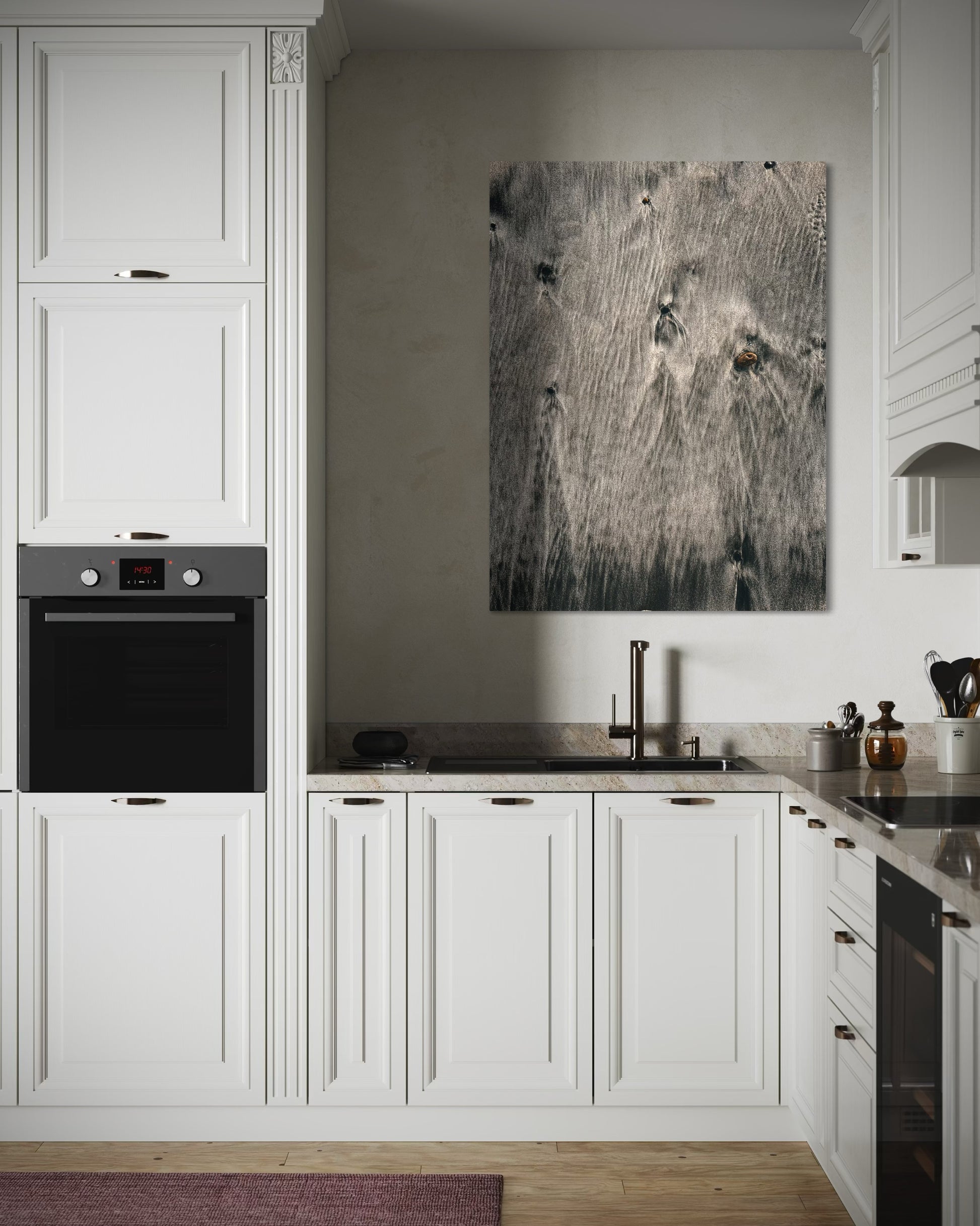 Bring the calm beauty of the shoreline into your home with this minimalist sand texture photography print by PolaDova.