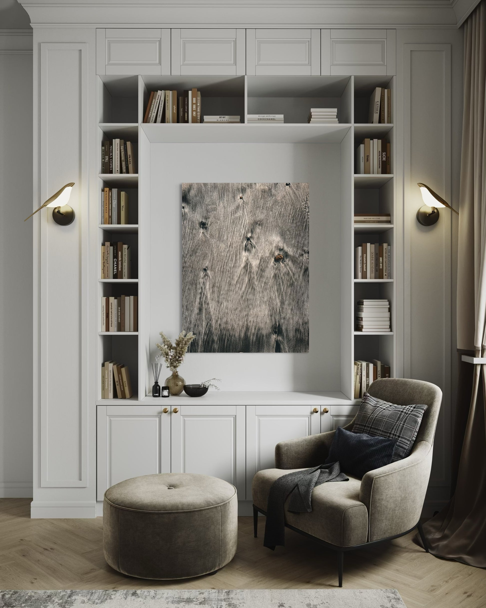 Details:• Fine art photography by PolaDova• Neutral beige and gray tones• Ideal for living room, bedroom, or office décor• Printed on premium archival paper