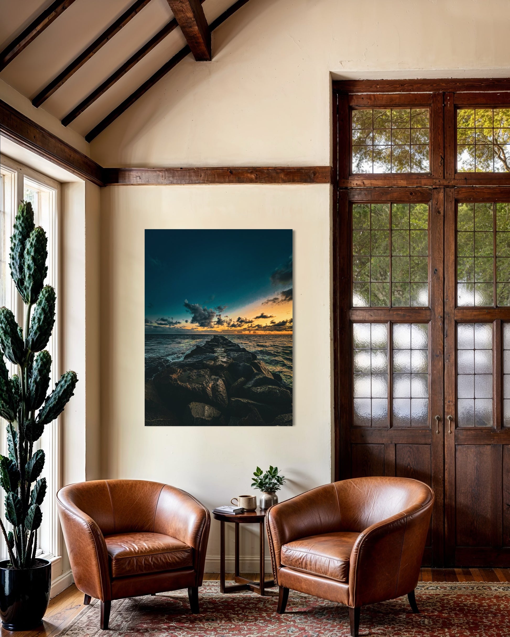 Every print is carefully produced and inspected to ensure gallery-level quality. hipping: securely packaged, ready to hang or frame.Let this ocean sunset remind you of calm horizons and endless movement — a timeless piece for those who love the sea.