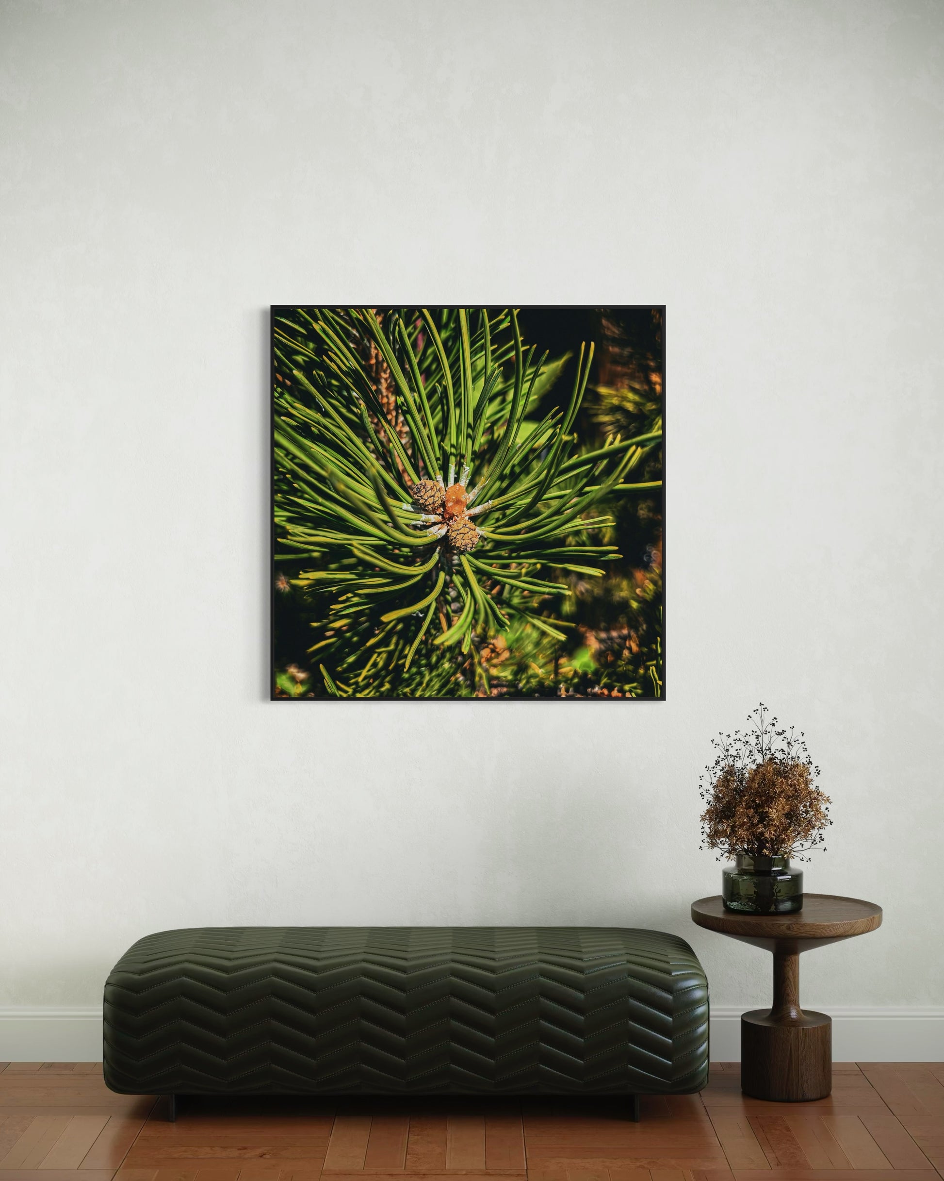 Pine Needle Macro Photography — Evergreen Nature Wall Art, Forest Botanical Print, Green Minimalist Home Decor by PolaDova. Museum-Quality Matte Paper Poster